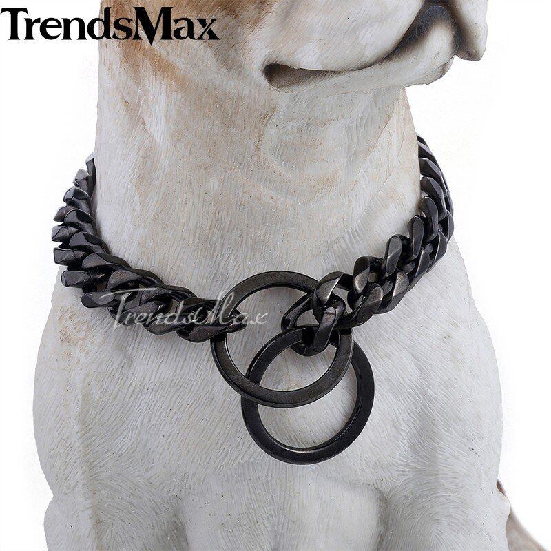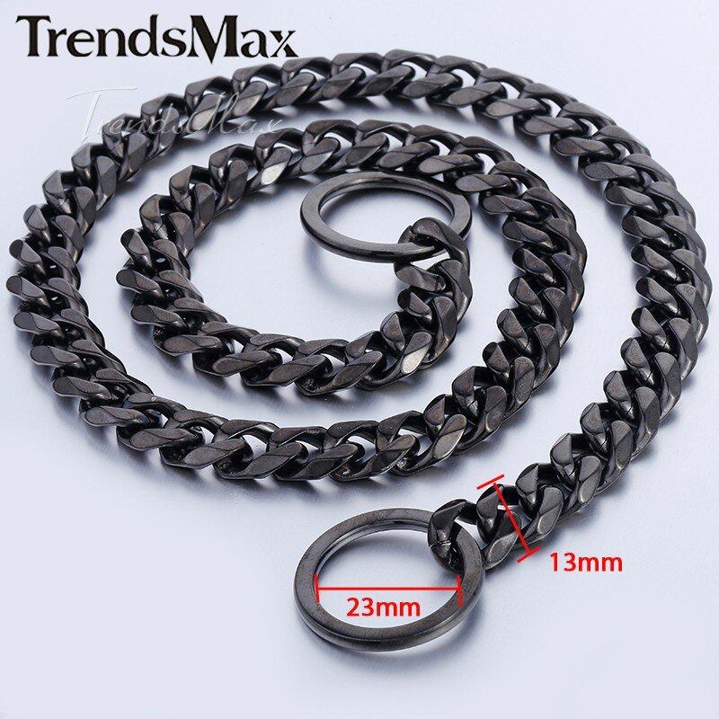 13mm ワイド 黒 ブラック カット カーブ キューバの リンク 316L ステンレス 犬 チェーン 襟