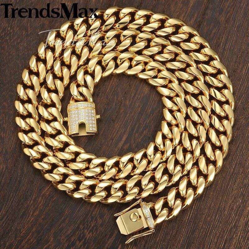 【送料無料】 メンズ ネックレス マイアミ チェーン 316L ステンレス CZ ゴールド シルバー 12 14mm 30inch 20000660