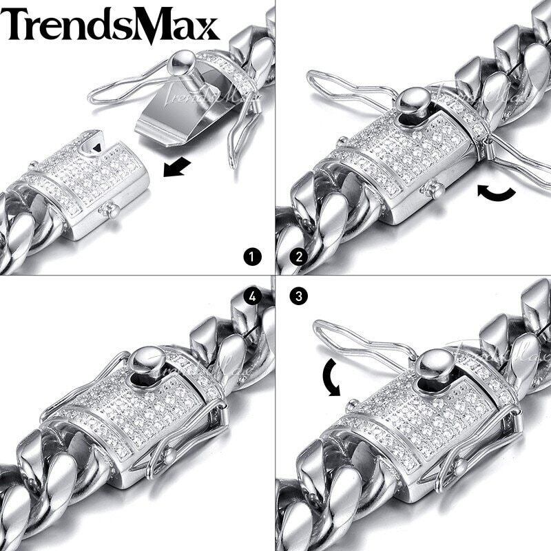 マイアミ カーブ メンズ ネックレス チェーン 316L ステンレス アイスアウト キュービック ジルコニア キュービックジルコニア ゴールド シルバー 12/14mm 30インチ