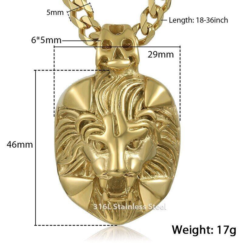 キング ライオン ペンダント ネックレス メンズ チェーン 316L ステンレス ボックス カーブ リンク シルバー ゴールド