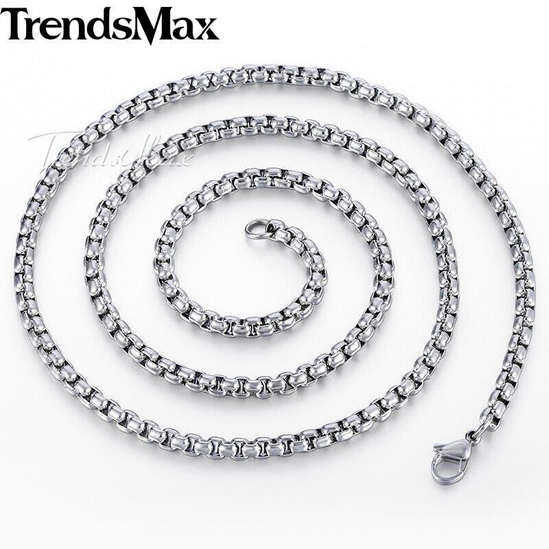 【送料無料】 メンズ ネックレス ラウンド ボックス リンク チェーン ステンレス シルバー 3 4mm 20000751