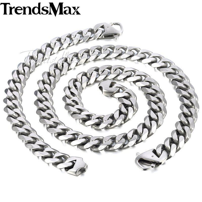 マット セット メンズ ネックレス ブレスレット 316L ステンレス チェーン シルバー カーブ キューバの リンク