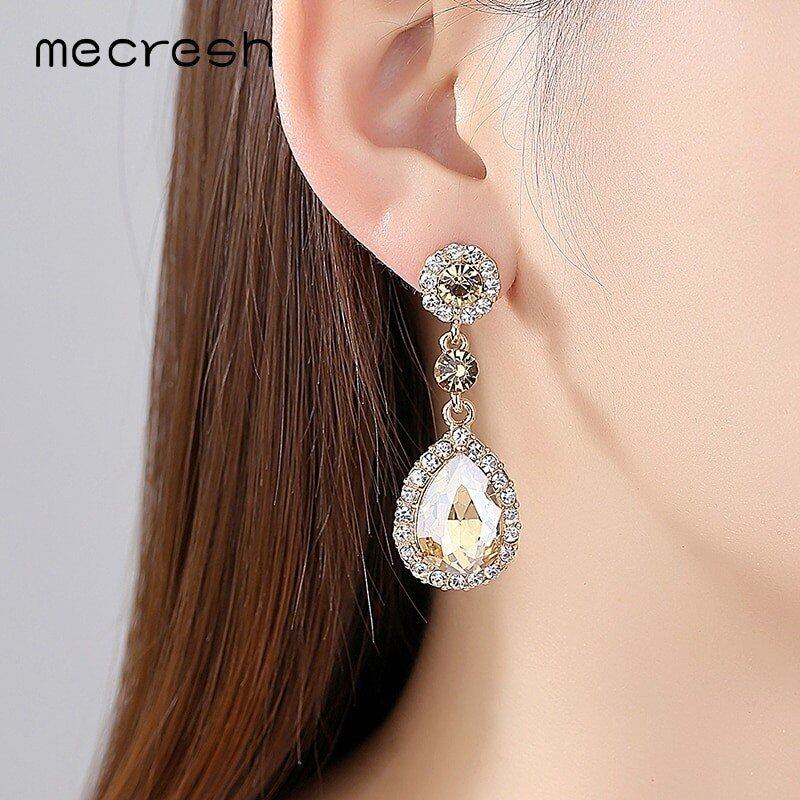 レディース ピアス ティアドロップ クリスタル ブルー シャンパン ブライダル ロング 揺れる 30000069