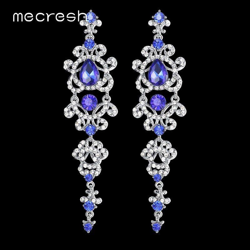 ブルー ブルー/シルバー カラー シャンデリア クリスタル ロング ピアス ピアス レディース ラインストーン 揺れる ピアス ピアス ブライダル 結婚式 ウェディング