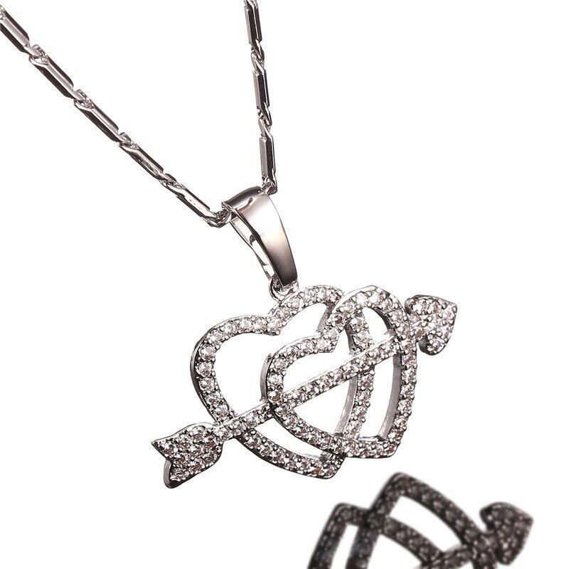 キューピッド 矢印 ハート ネックレス ペンダント 925 シルバー カラー キュービック ジルコニア 矢印 love