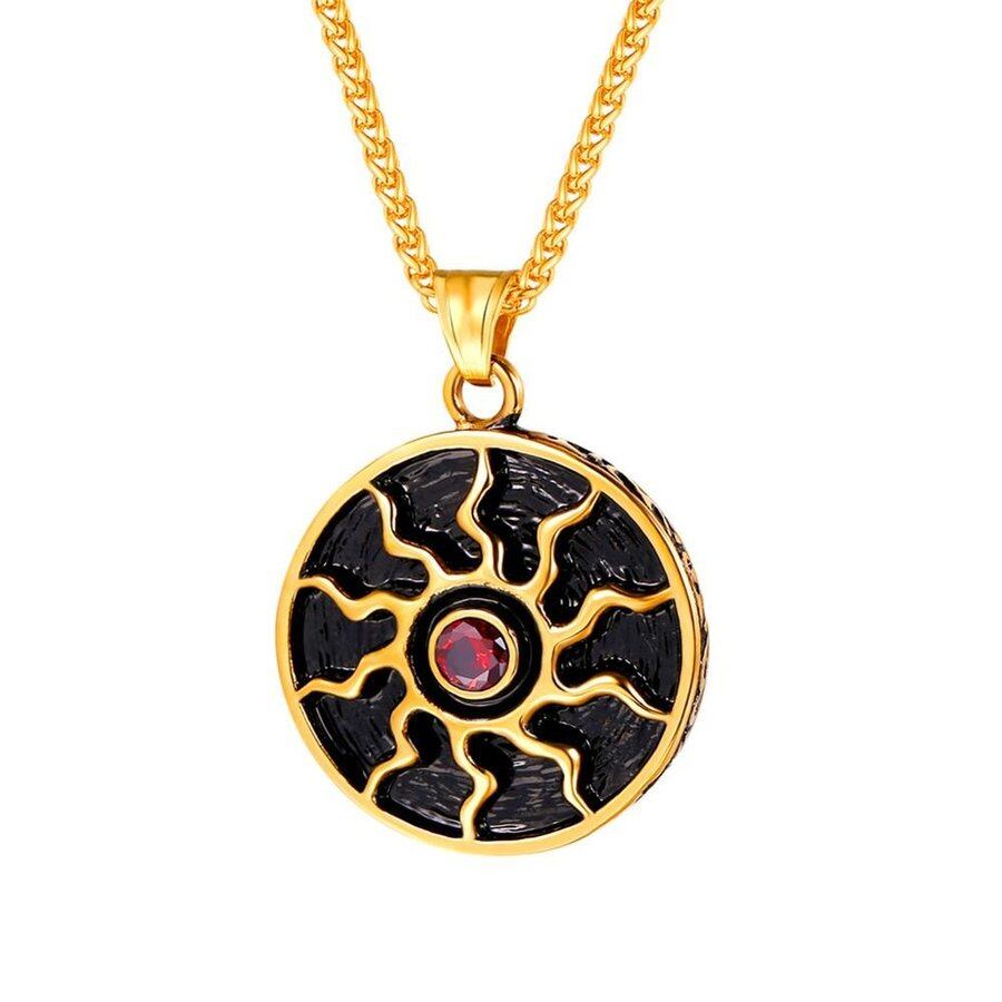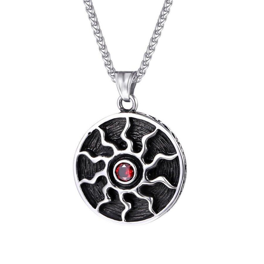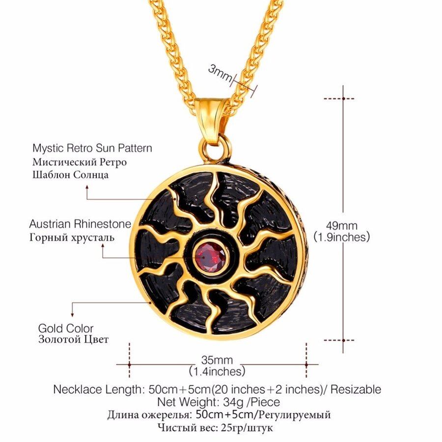 ネックレス ステンレス 赤 ラインストーン ミスティック レトロ 太陽 トーテム パターン チェーン カラー ネックレス