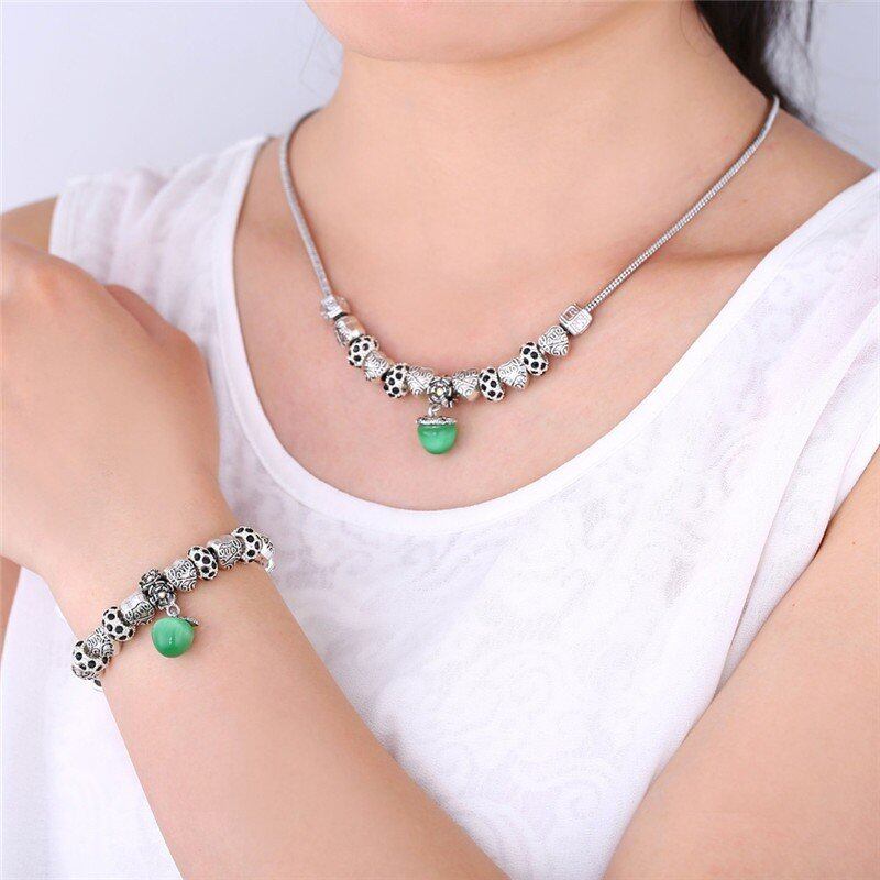 レディース ネックレス ブレスレット ジュエリーセット ビーズ セット チベット シルバー メッキ オパール ストーン 80001105