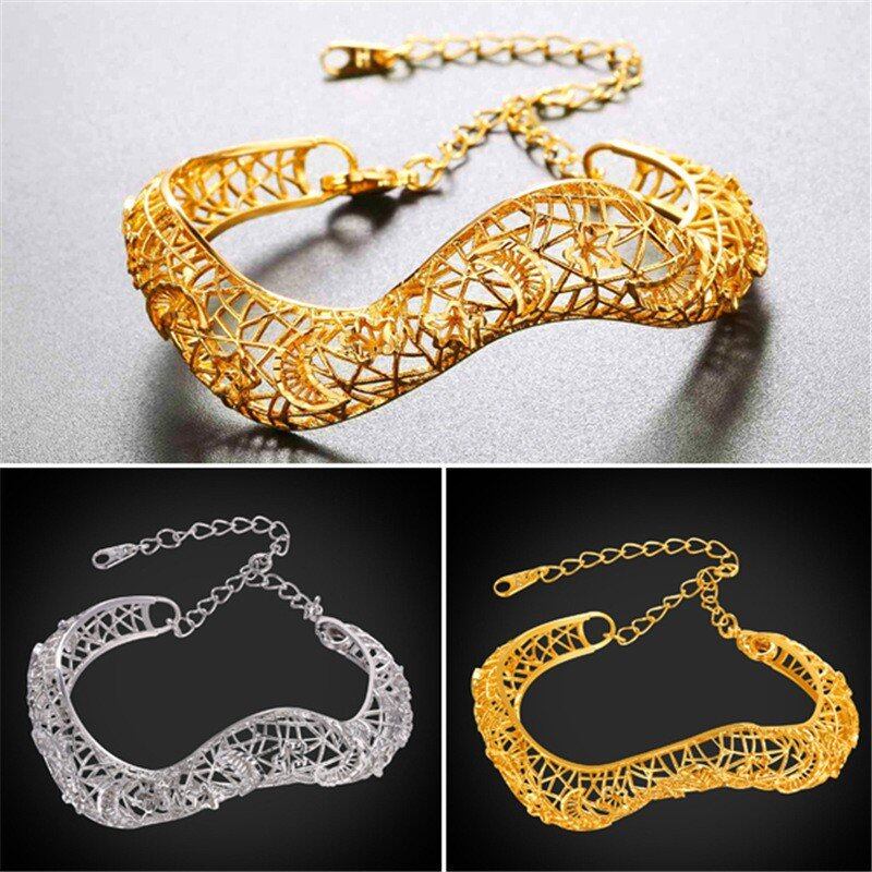 レディース ブレスレット バングル 不定期 空洞 アウト カフ 腕輪 チェーン 調整可能 シルバー カラー 80001121