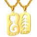 ネコ 魚 love ネックレス カラー ステンレス カップル /