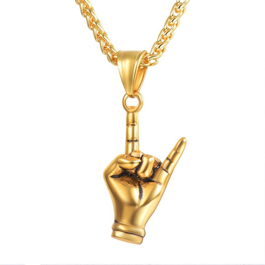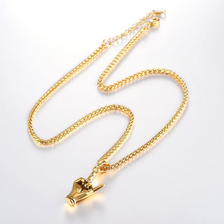 ロック 指 ハンド ジェスチャー ネックレス ステンレス ネックレス ヒップ ホップ チェーン