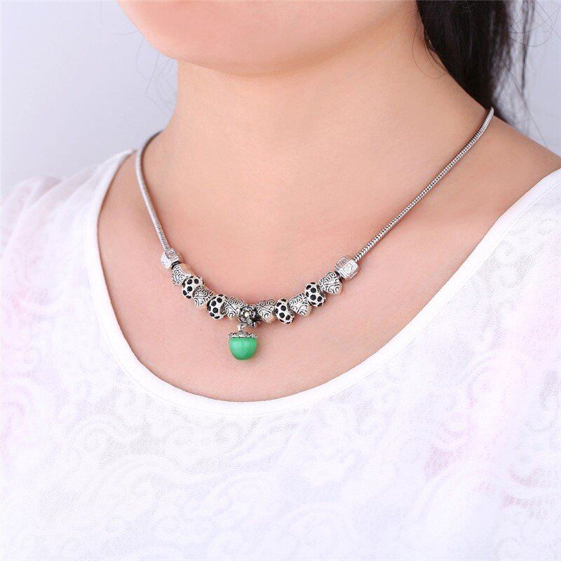 レディース ネックレス 欧州 ビンテージ ビーズ チベット シルバー カラー オパール ストーン ハート チャーム 80001189