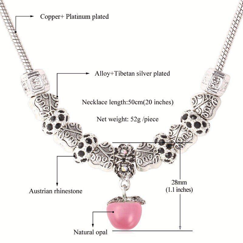 欧州 ビンテージ ビーズ チベット シルバー カラー オパール ストーン ハート チャーム ネックレス