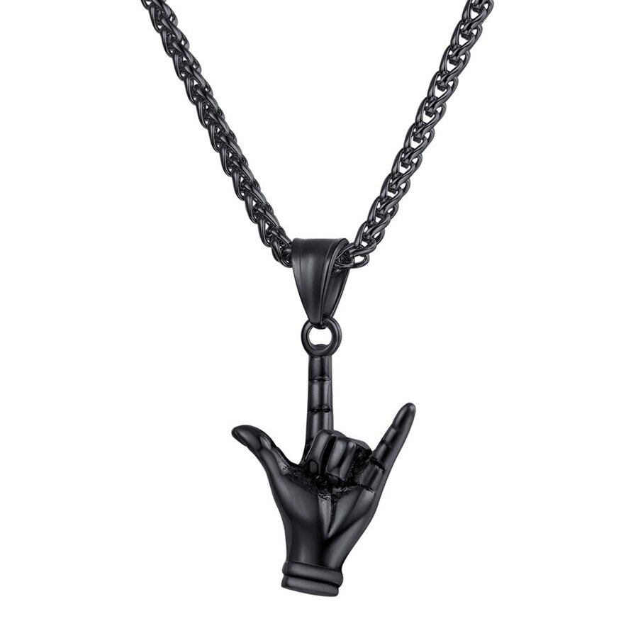 ブランド ロック ロール I love ジェスチャー ネックレス ステンレス ネックレス ヒップ ホップ スタイル