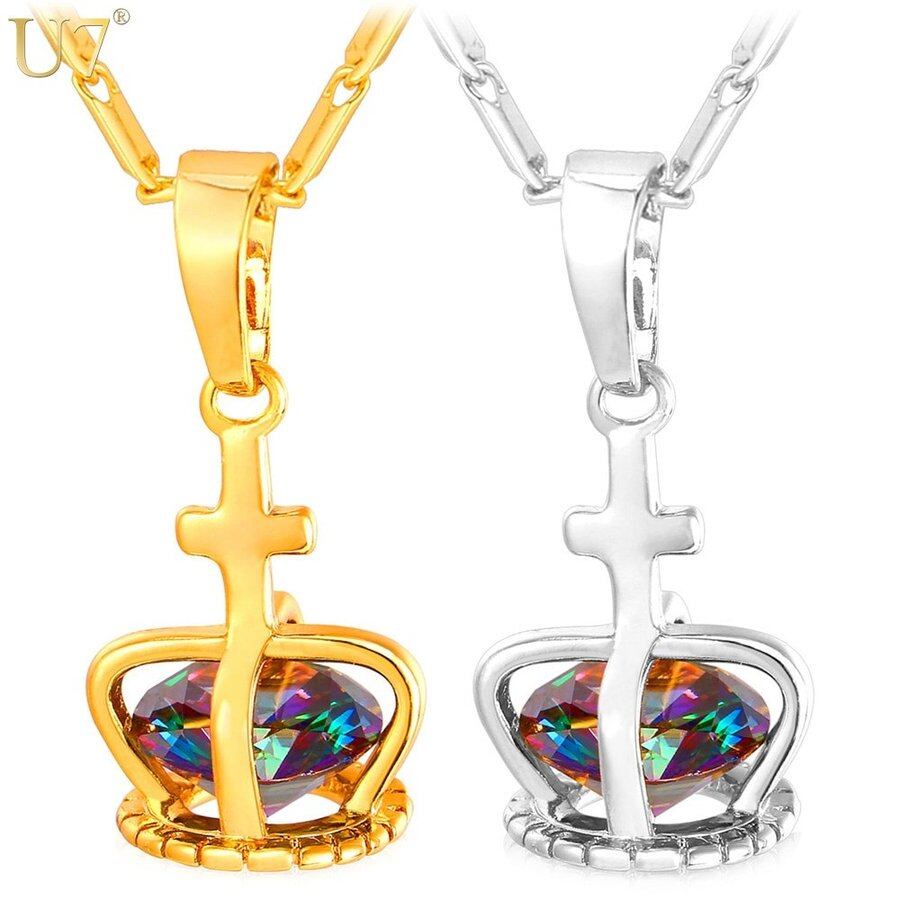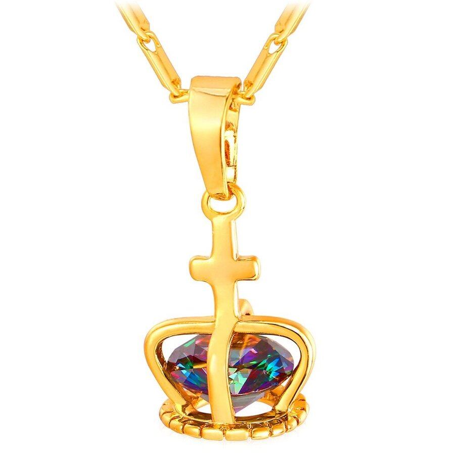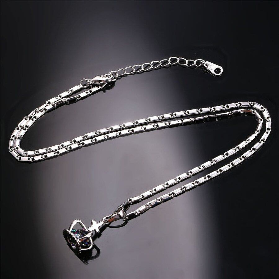 クリスタル クラウン ネックレス ペンダント /シルバー カラー クロス