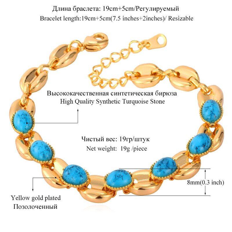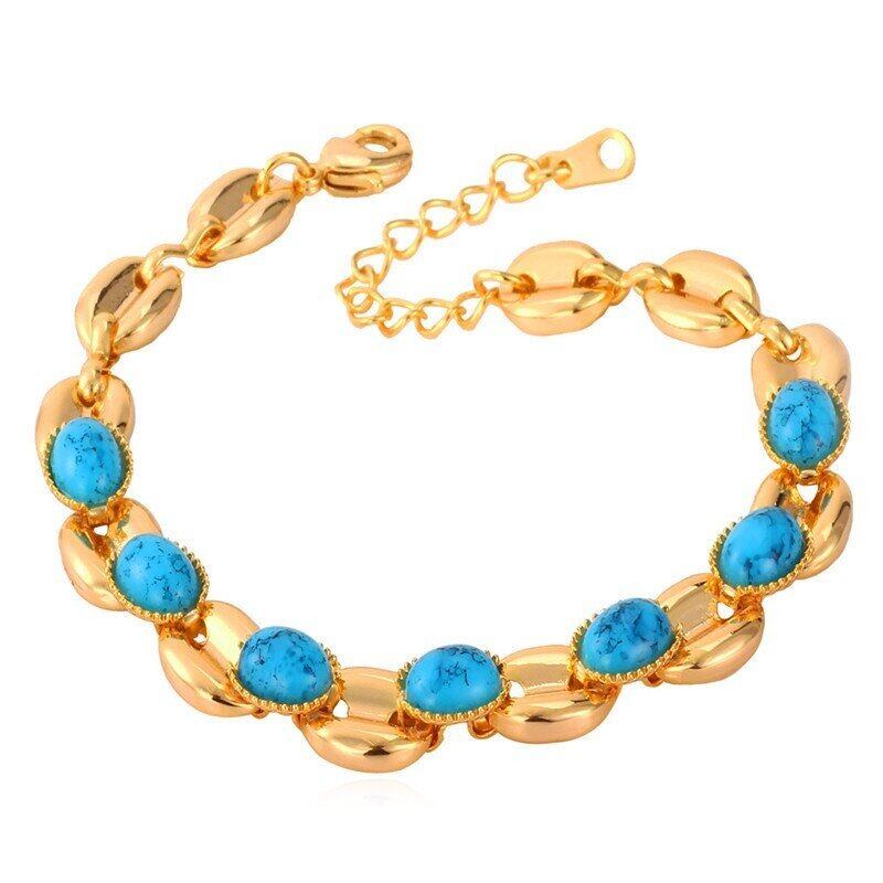 レディース ブレスレット 青 ストーン カラー 七面鳥 フリーサイズ チェーン 80001241