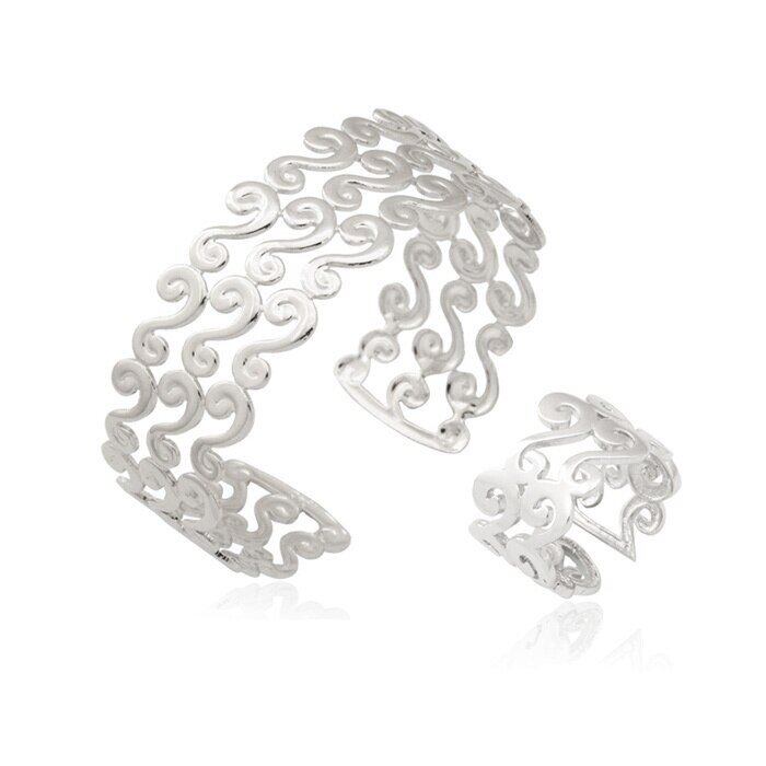 レディース ブレスレット リング 指輪 ジュエリーセット ビンテージ 文字 オープン カフ セット パーティー 80001285