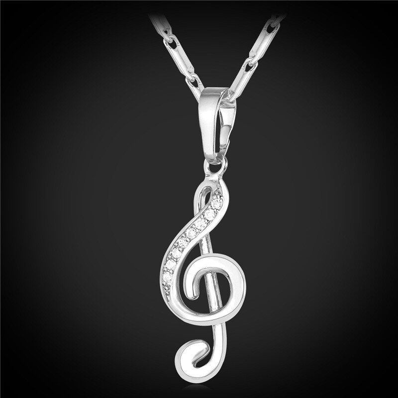 音楽 ノート ネックレス シルバー/ カラー 音楽 キュービック ジルコニア ミュージカル きゃしゃ ネックレス