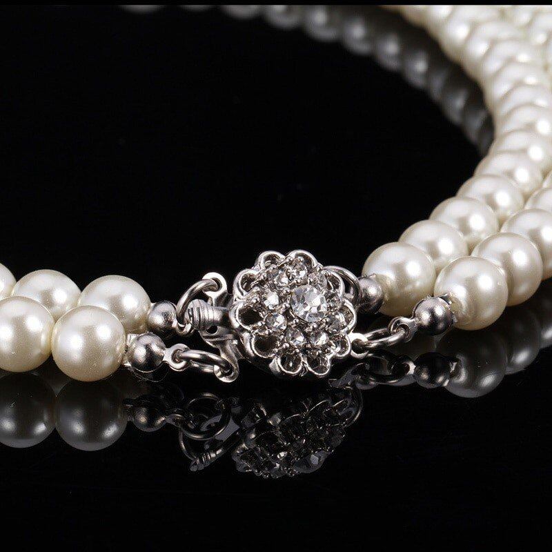 チョーカー ネックレス トレンディー キッドレイヤー ラインストーン ブラック / 白 シミュレー パール ネックレス
