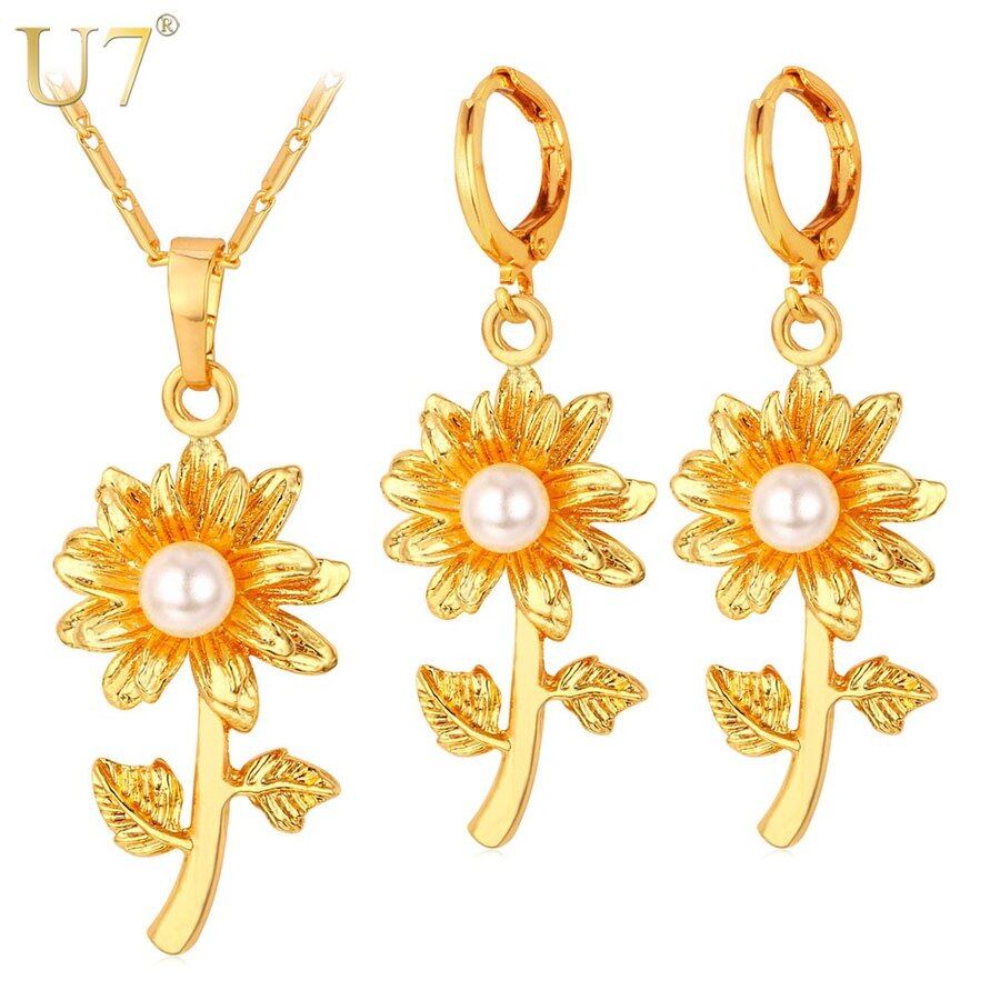フラワー シミュレー パール セット /シルバー カラー ピアス ネックレス セット