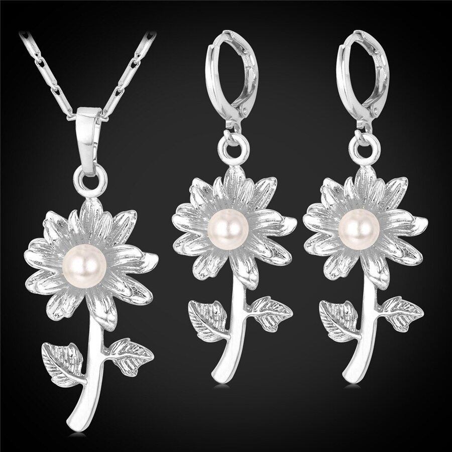 レディース ネックレス ピアス ジュエリーセット フラワー パール セット シルバー カラー 80001409