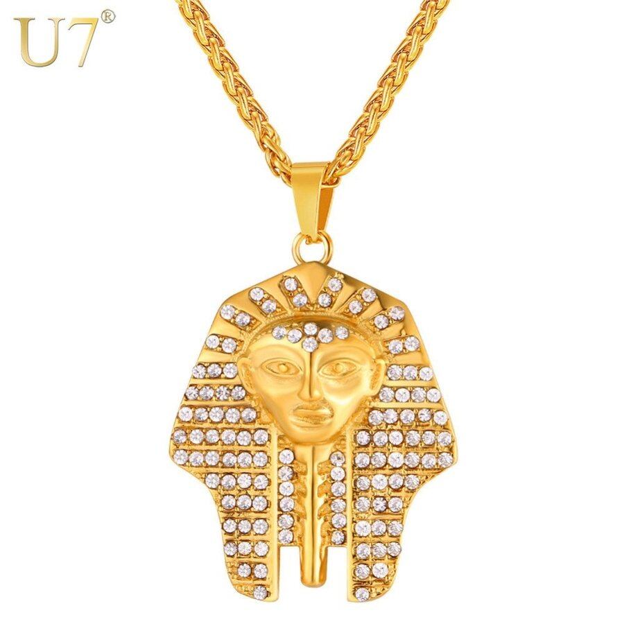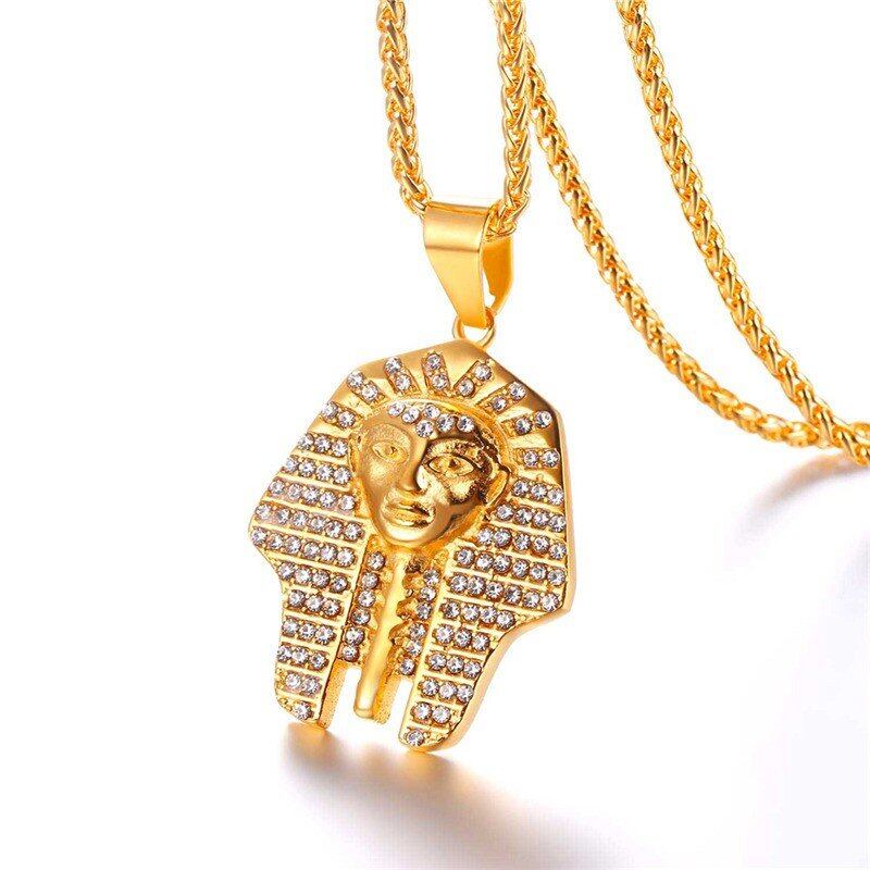 クリスタル エジプト ファラオ 頭 ネックレス / クラシック 古代 エジプト オーナメント ネックレス