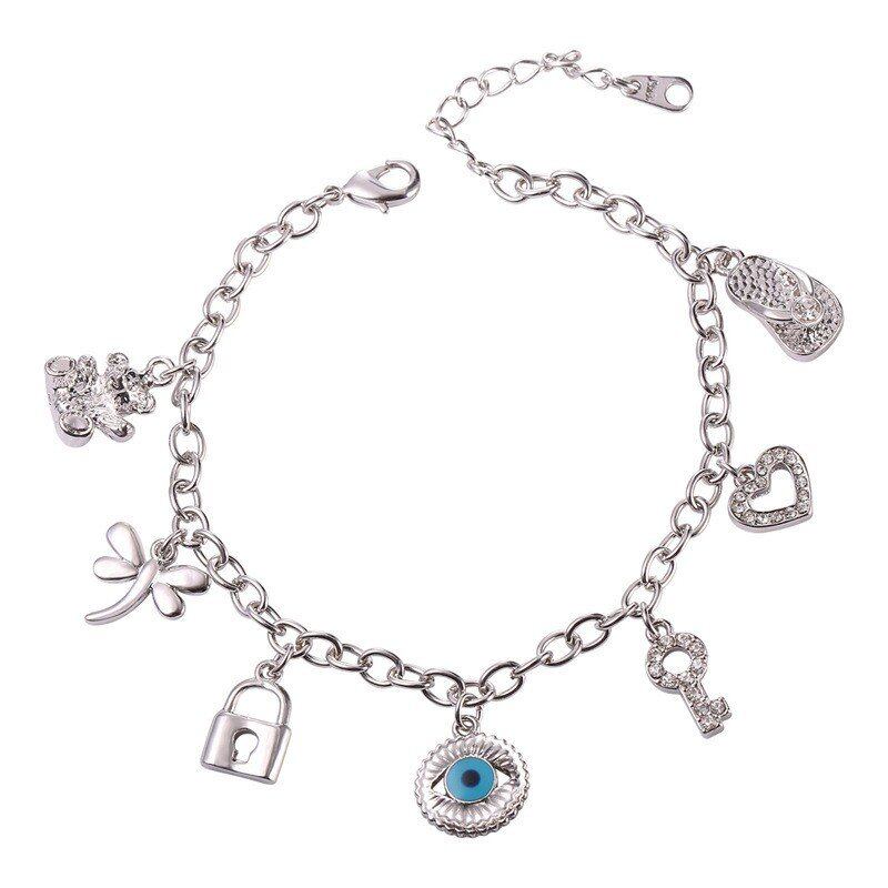 レディース ブレスレット チャーム くま ハート キー 眼 シルバー カラー ラインストーン 80001506