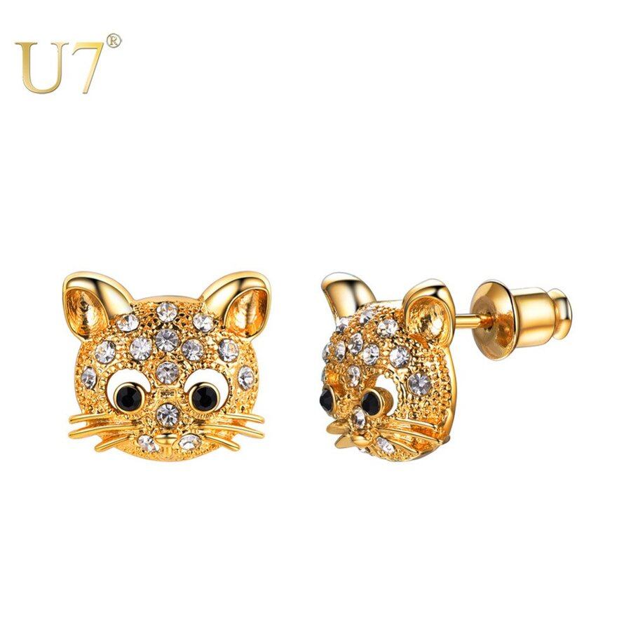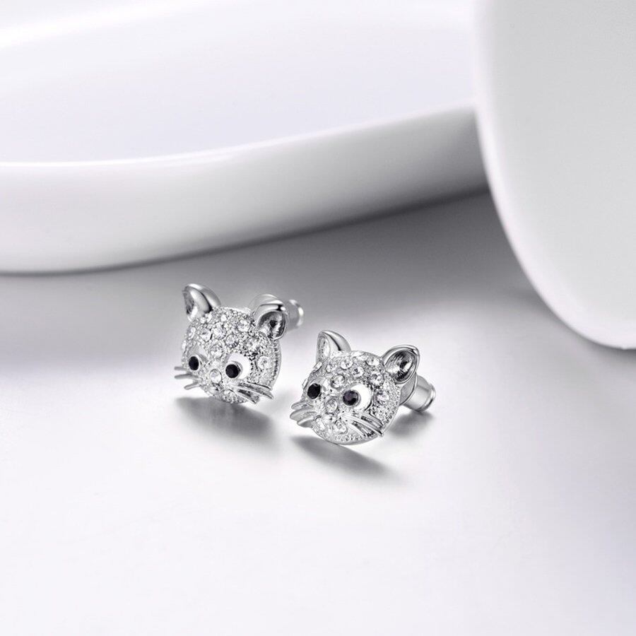 レディース ピアス ラブリー 動物 ネコ ラインストーン 耳 スタッド 子猫 4 カラー 80001517
