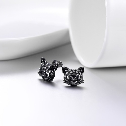 ファッション ラブリー 動物 可愛い ネコ ラインストーン 耳 スタッド ピアス お誕生日 子猫 ピアス 4 カラー