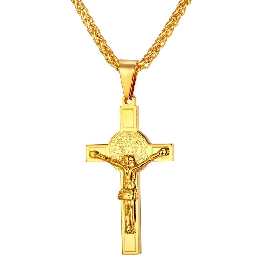 イエス ピース ラテン クロス ネックレス クリスマス カラー 316L ステンレス チェーン キリスト