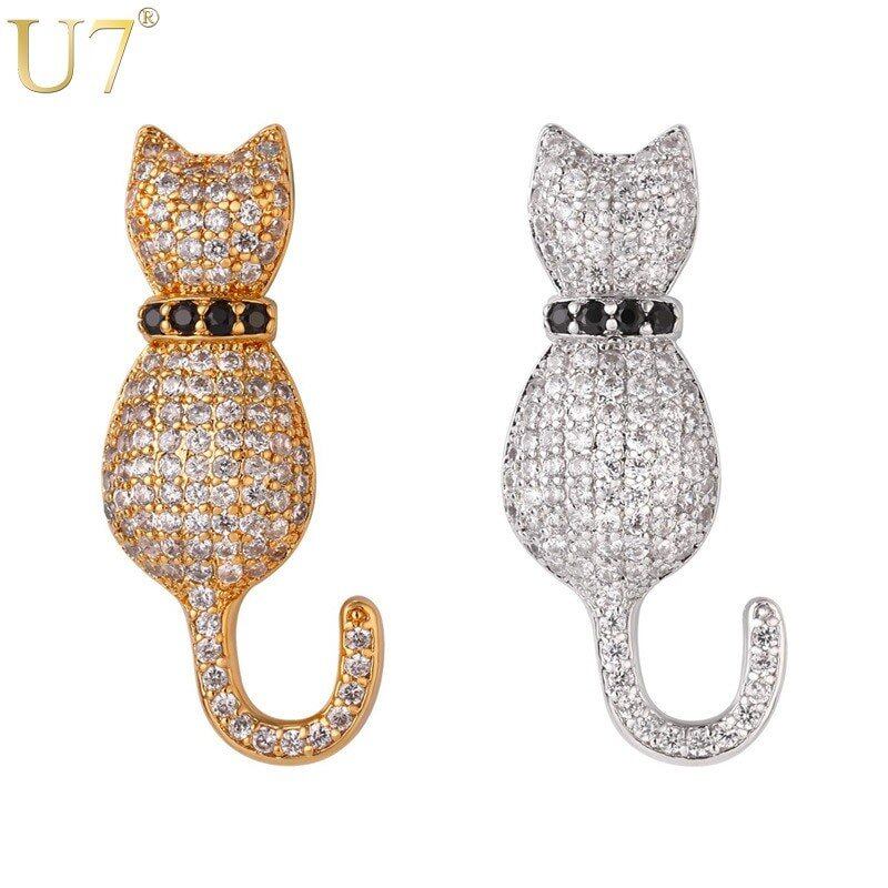 ブランド 可愛い 動物 少し ネコ ブローチ シルバー/ カラー ラインストーン クリスタル ピン