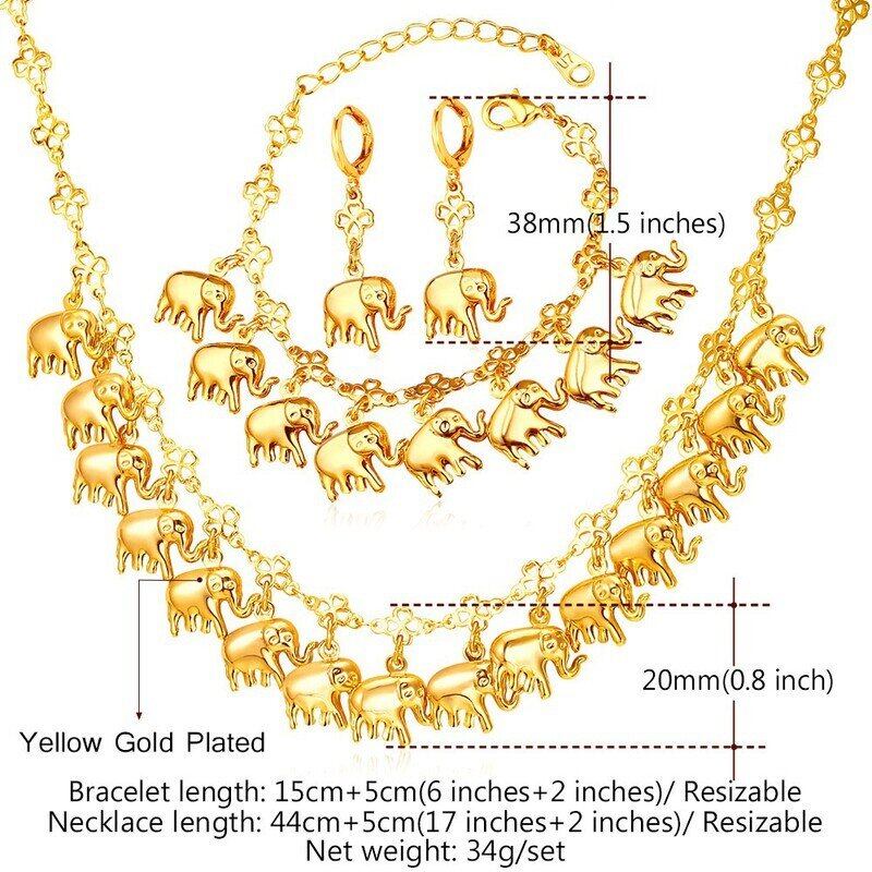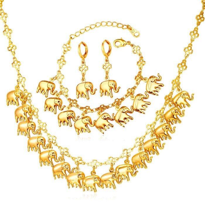 レディース ネックレス ブレスレット ピアス ジュエリーセット 象 チャーム セット ラッキー 動物 カラー 80001578