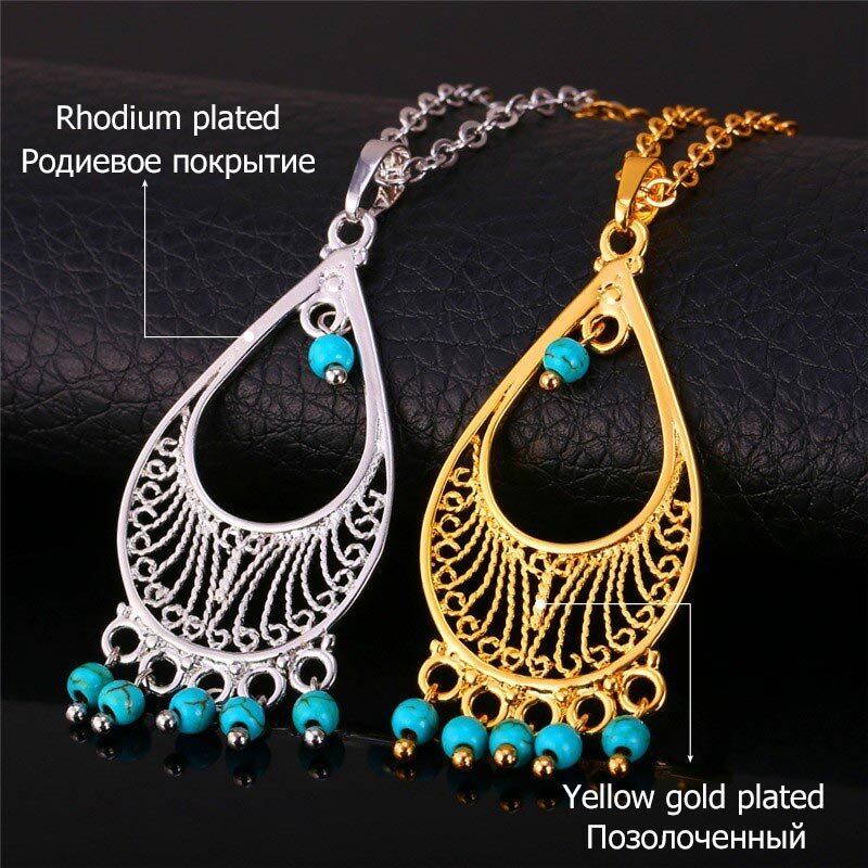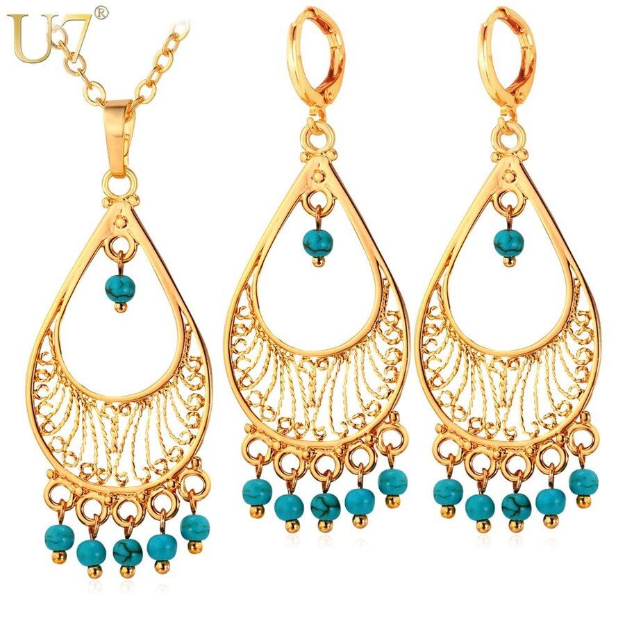 トルコ セット カラー 青 ストーン トレンディー ピアス ネックレス セット ボヘミアン