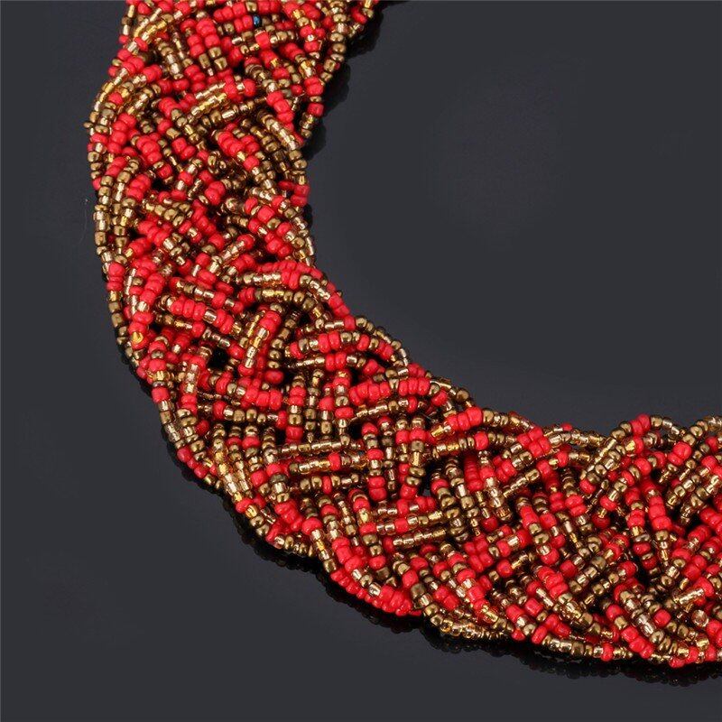 マキシ ネックレス 赤/ブラック ナイジェリア ビーズ チョーカー ボヘミア ネックレス ステートメント ネックレス ファッション