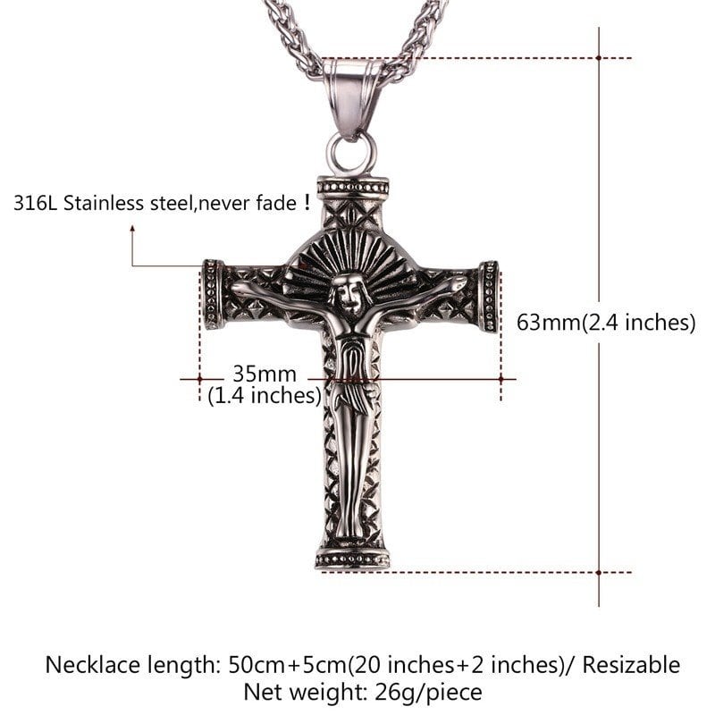 メンズ ネックレス イエス ピース クロス ビンテージ カラー ステンレス 大きい チェーン キリスト 80001656