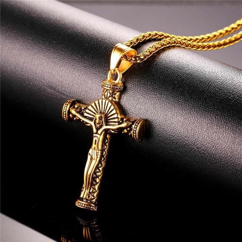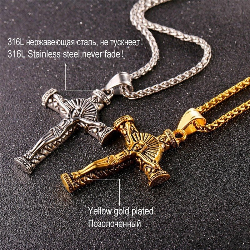 イエス ピース クロス ネックレス ビンテージ カラー ステンレス 大きい チェーン キリスト クロス