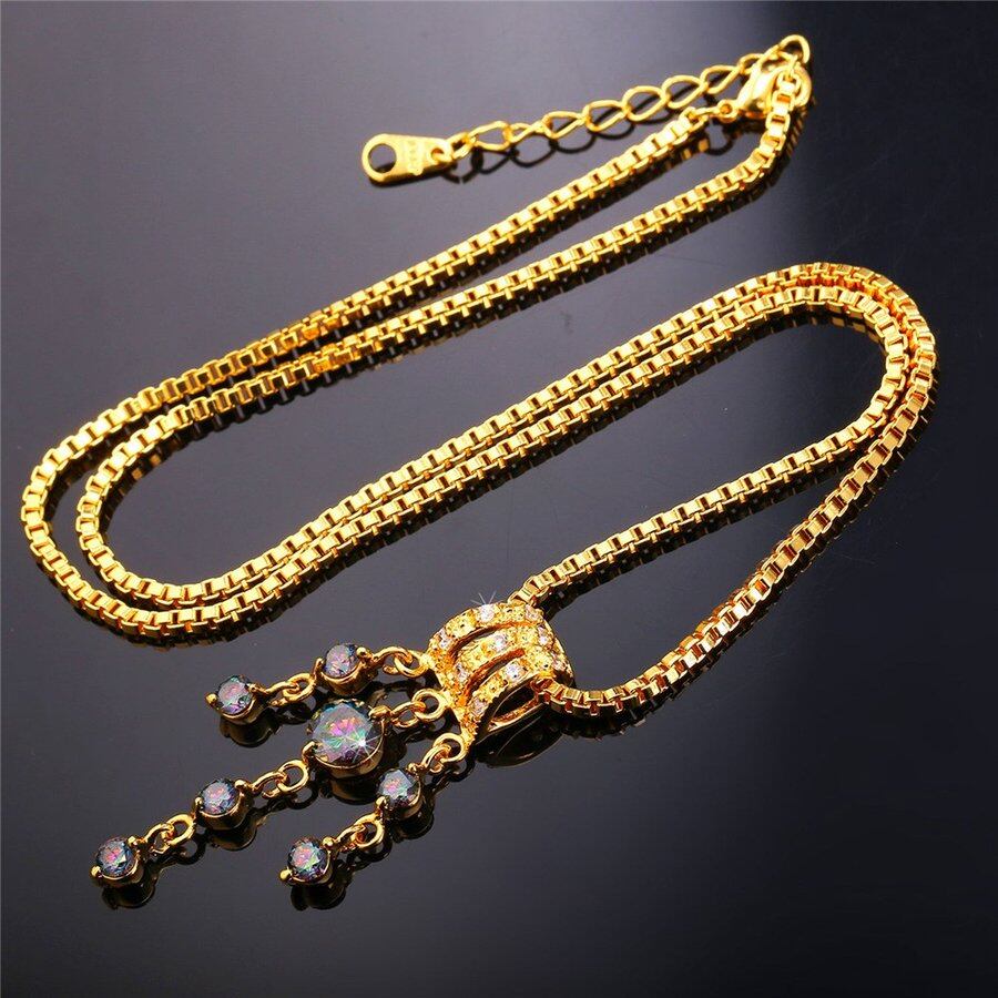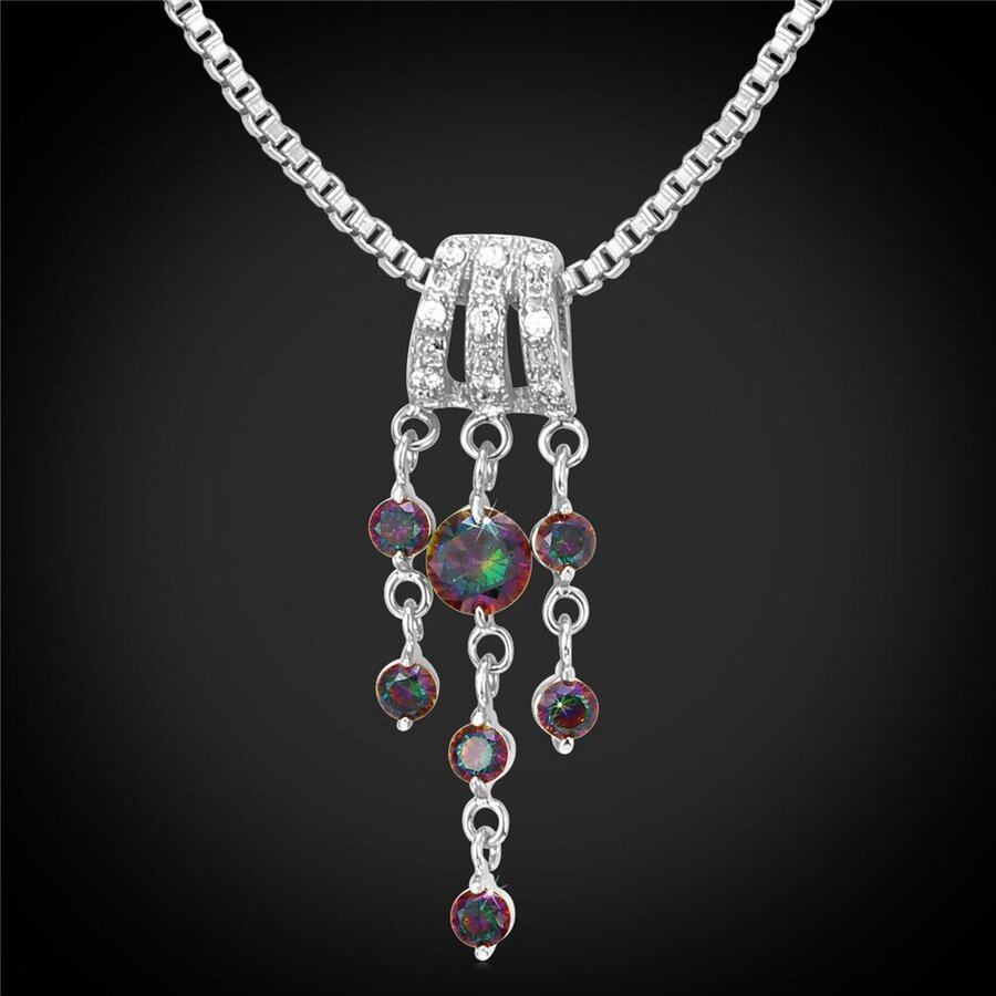 レディース ネックレス カラフル キュービック ジルコニア タッセル ボックス チェーン パーティー カラー ペンダント 80001658