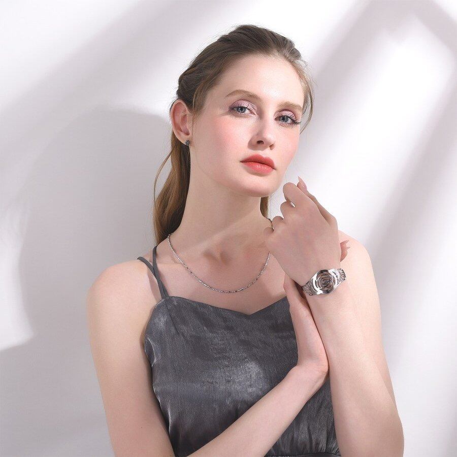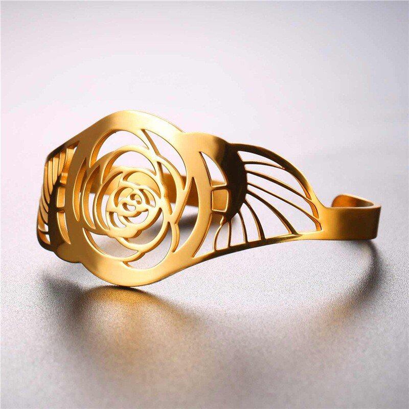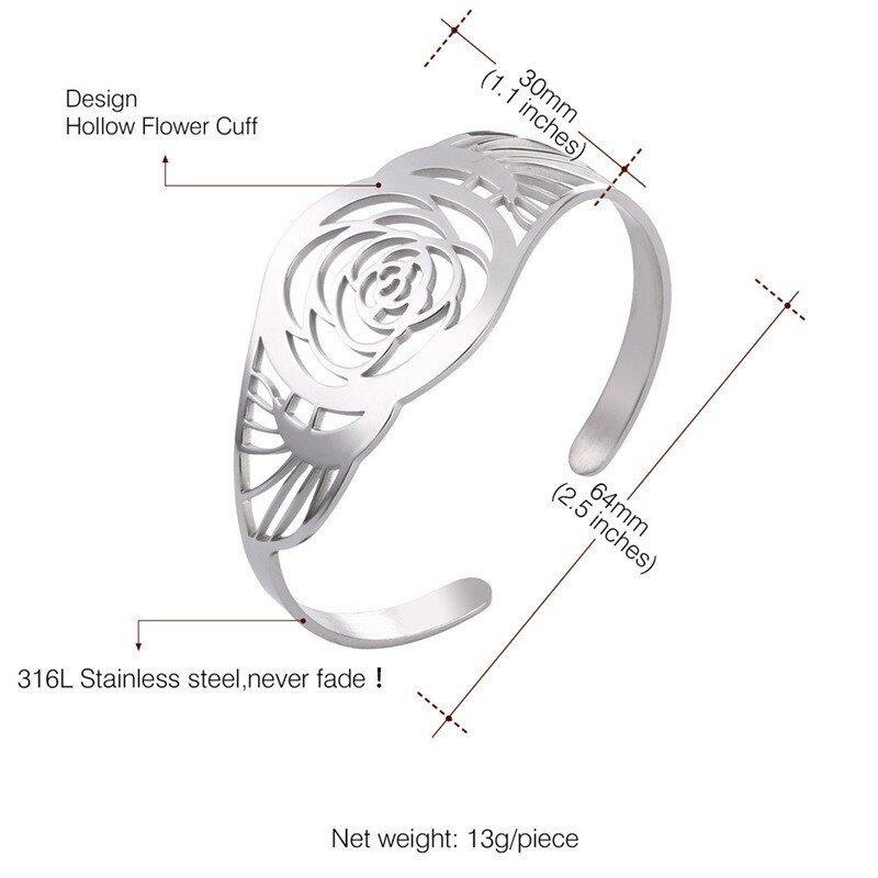 レディース ブレスレット バングル ステンレス カラー 大きい 空洞 ローズ フラワー カフ ビンテージ 腕輪 80001665