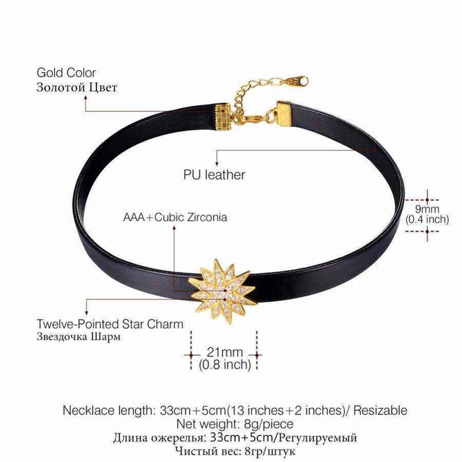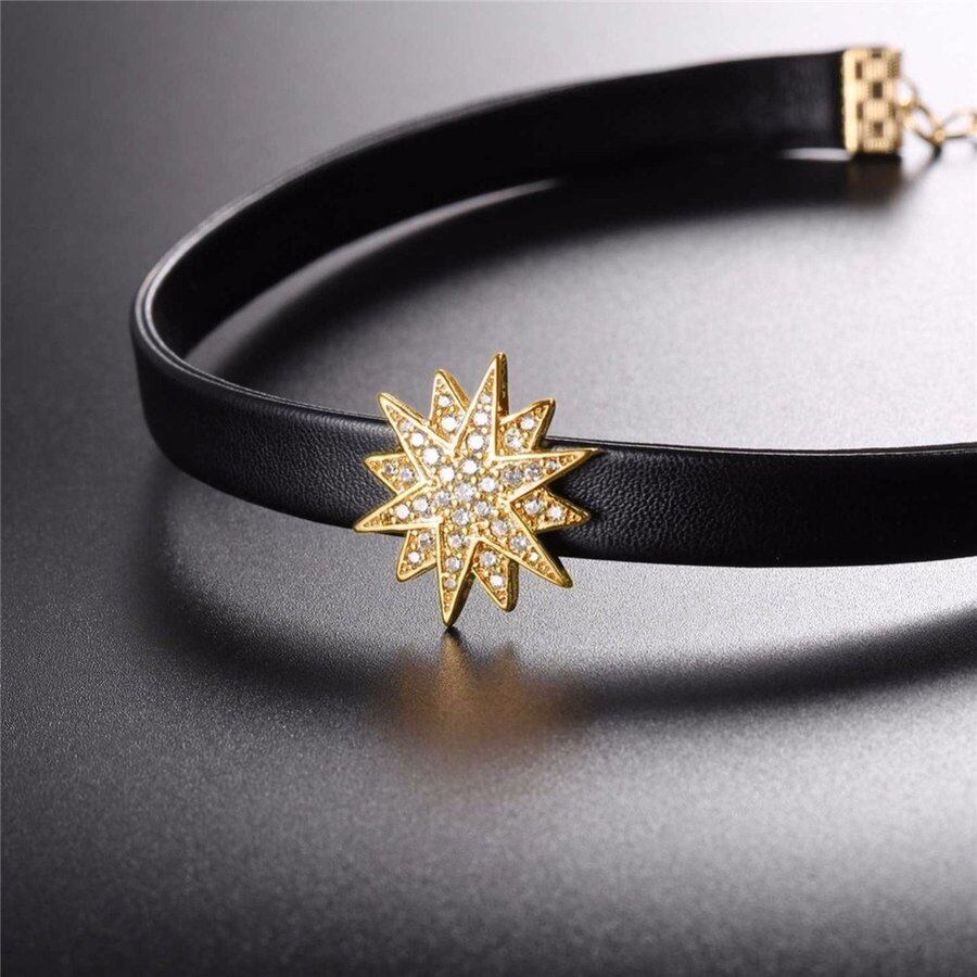 チョーカー キュービック ジルコニア 星 ハート クロス ブラック レザー ネックレス クリスマス ミニマリスト ネックレス