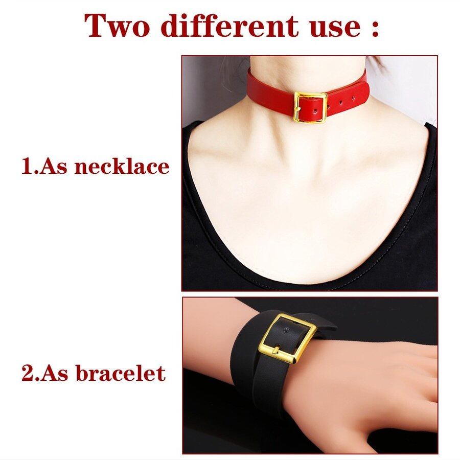 レディース ネックレス ブレスレット チョーカー 赤 ブラック レザー ビンテージ パンク ロック ショート バンド 80001703