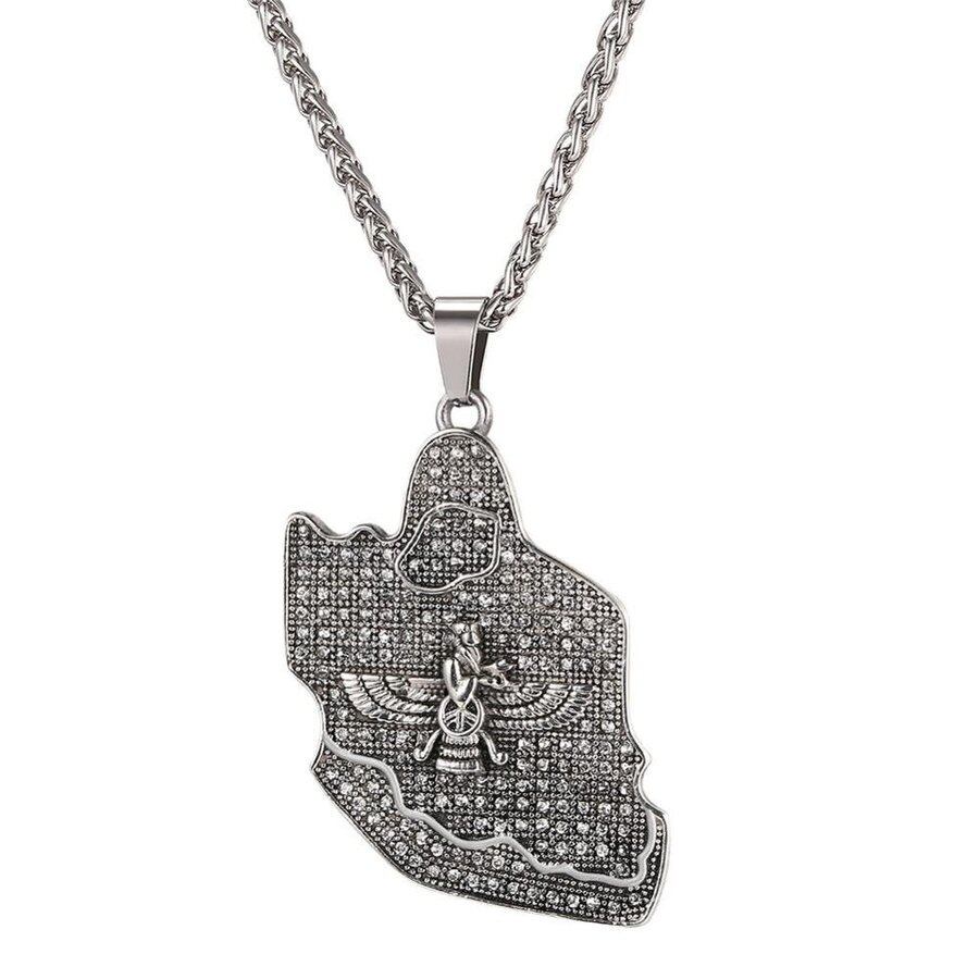ネックレス アイス アウト イラン 地図 ステンレス 大きい チェーン カラー 地図 ネックレス