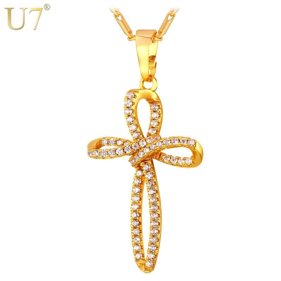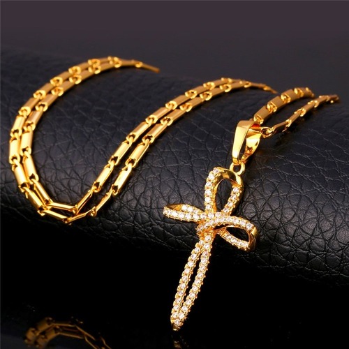 クロス ネックレス ユニーク 設計 シルバー/ カラー キュービック ジルコニア ビンテージ クロス ペンダント ネックレス