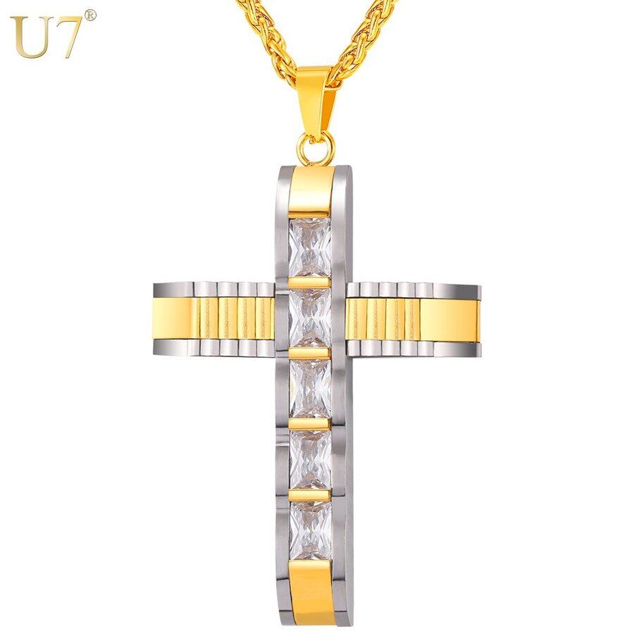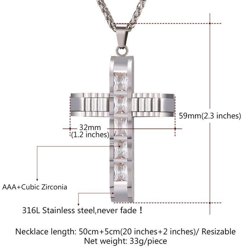 大きい クロス ネックレス 2トーン カラー ステンレス キュービック ジルコニア キリスト /
