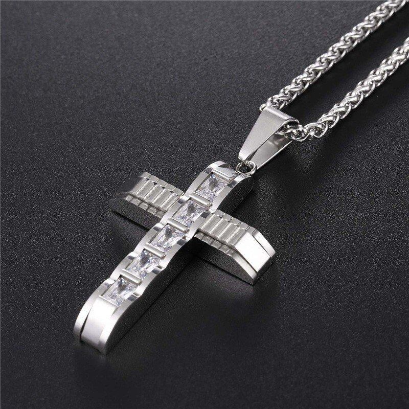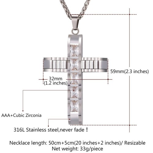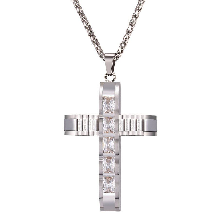 レディース ネックレス 大きい クロス 2トーン カラー ステンレス キュービック ジルコニア キリスト 80001744