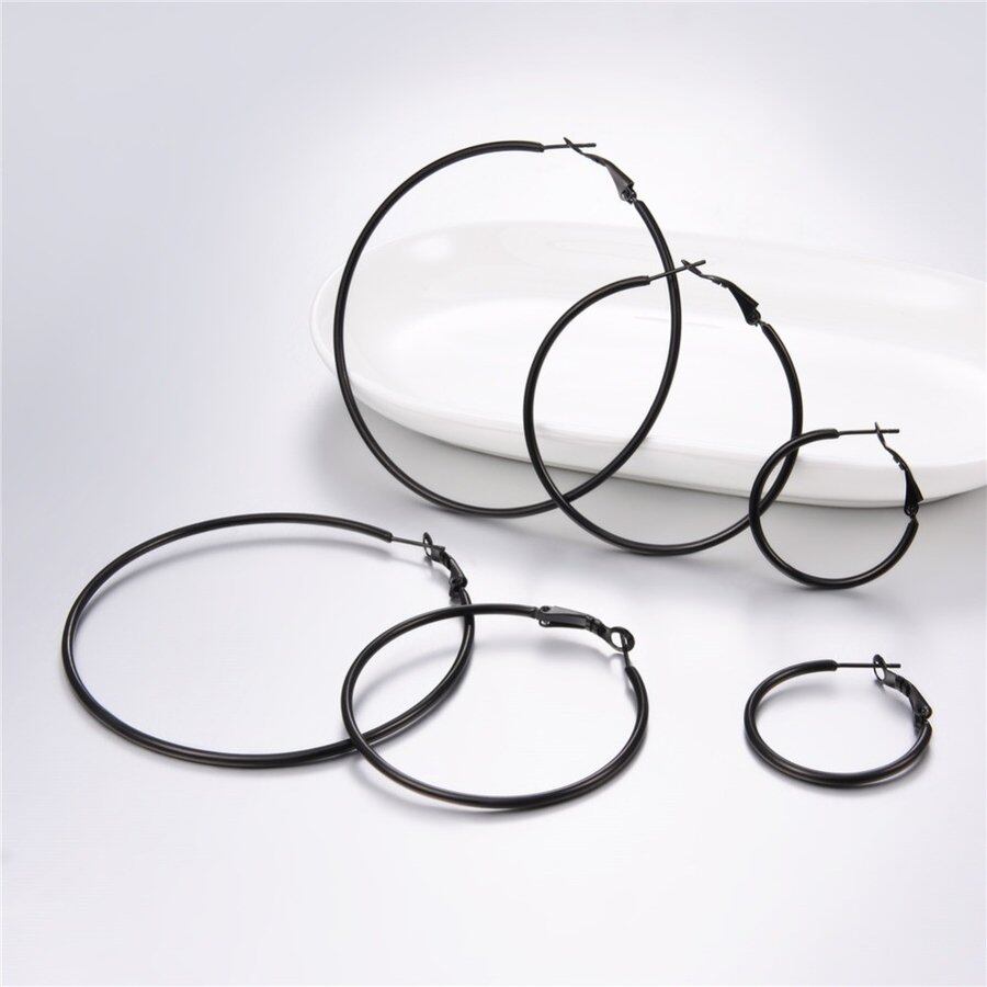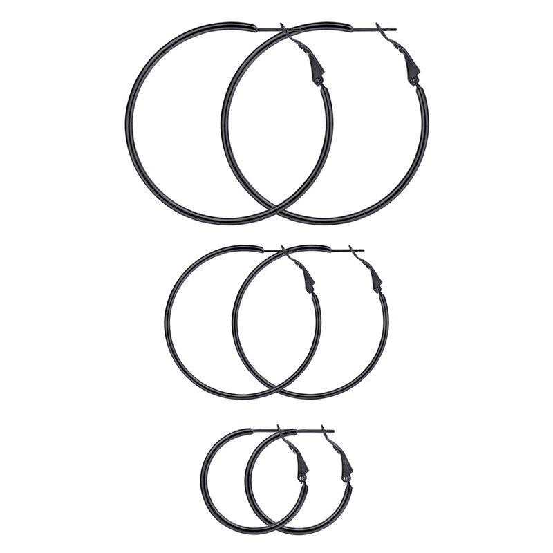 ステンレス シンプル 大きい/小さい 希望 ピアス 3 サイズ /ブラック カラー サークル ピアス セット ミニマリスト