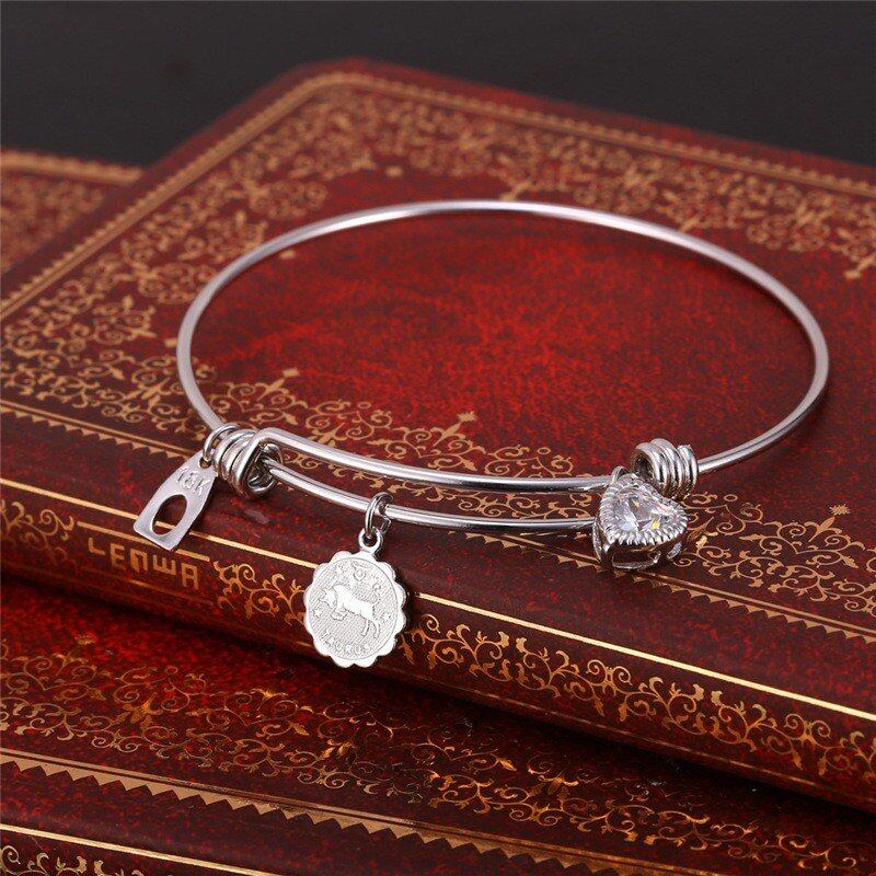 12 黄道帯 星座 ブレスレット シルバー カラー キュービック ジルコニア 星占い ブレスレット バングル お誕生日
