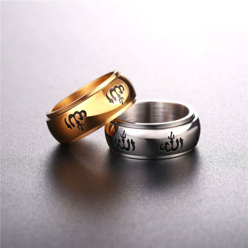 回転可能 バンド リング 8mm 大きい 神 イスラム イスラム カラー ステンレス 指 スピナー リング