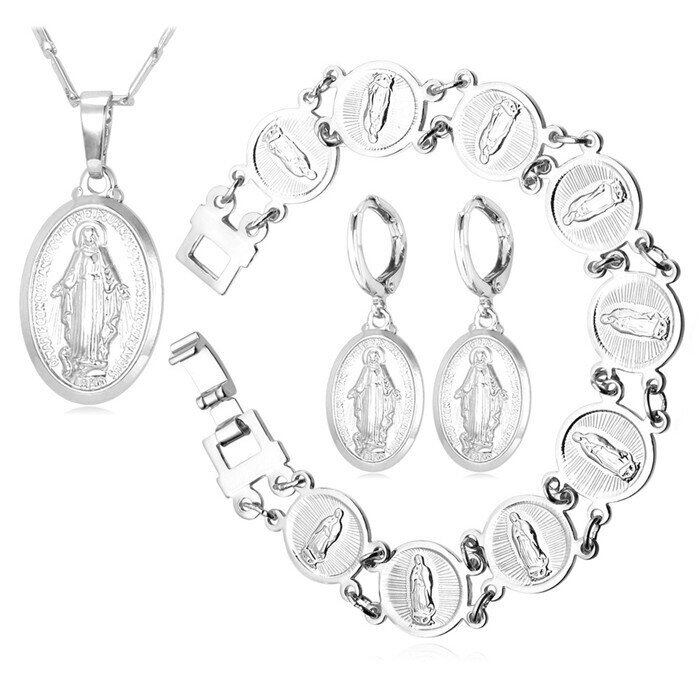 バージン メアリー ピアス ブレスレット ネックレス セット トレンディー カラー キリスト クロス セット
