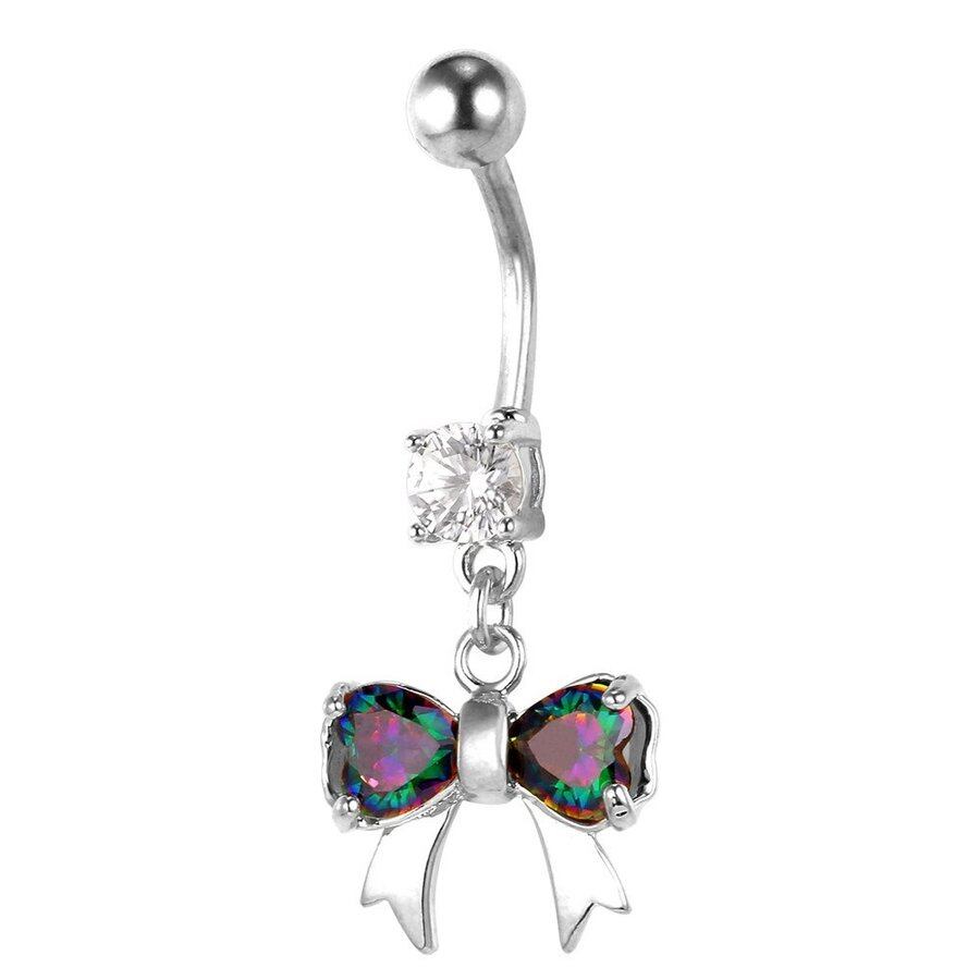 カラー ピアス 臍 可愛い キュービック ジルコニア 腹 ボタン リング リボン ネーブル ボディ