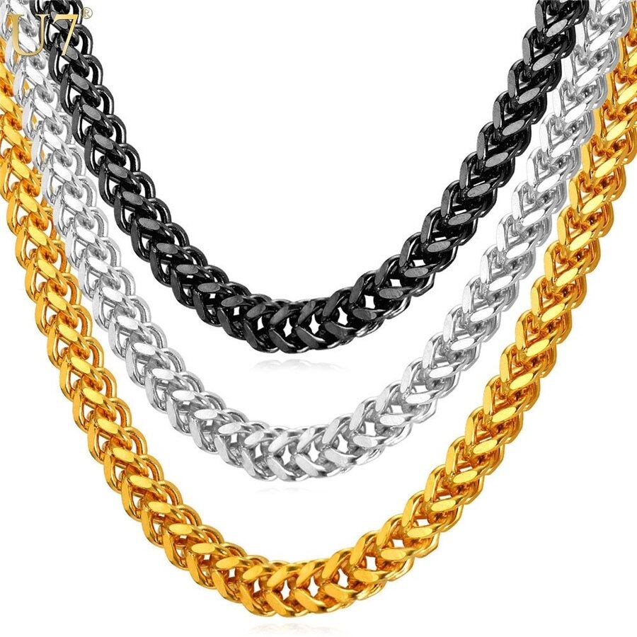 カラー チェーン ヒップホップ ステンレス スチームパンク スタイル 小麦 チェーン チャンキー ネックレス