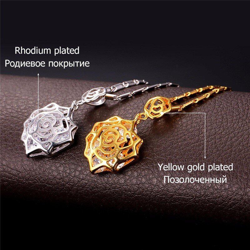 トレンディー ローズ ペンダント ファッション カラー フラワー ジルコニア ネックレス ペンダント